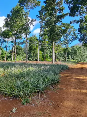 As you walk, the landscape gently evolves: vegetation opens up, relief appears, and pineapple fields outline the territory, bearing witness to the bond between the land and those who cultivate it. The route alternates between shaded areas, open spaces and viewpoints that allow you to see Moorea differently, from its very heart.