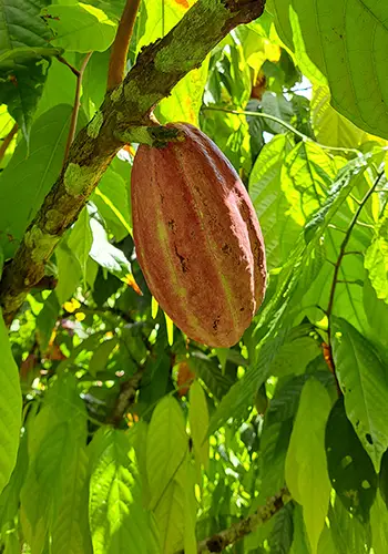 Les champs d’ananas, tout le monde les voit depuis la route… mais entrer dedans, prendre le temps, sentir, observer, c’est différent. Et puis il y a le cacao. Peu de visiteurs savent qu’il pousse ici, presque caché, dans cet équilibre entre nature et culture.